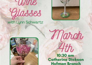 Paint a Spring scene on a wine glass with artist Lynn Schwartz. All supplies will be provided including the glass, paints and brushes needed, paper palette, and aprons for anyone who wants to protect their clothes.