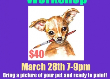 Attention Pet Lovers! Want to paint a picture of your pet? Then, this painting event is for you! For $40, bring a picture of your pet and get ready to paint. Sign-up at www.johnnebioloart.com.