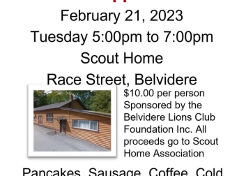 Bring the family to the Scout House in Belvidere. $10 per person and all proceeds benefit the Scout House Association. Pancakes, sausage, coffee, cold drinks, desserts and live Mardi Gras music.