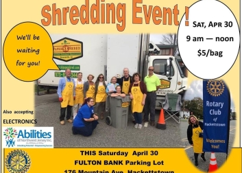Hackettstown Rotrary Club is ready to shred your old documents, bills and any other paperwork while Abilities of Northwest New Jersey will be accepting old electronics.