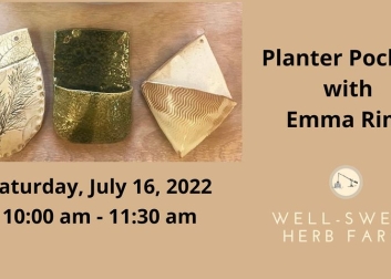 Join Emma Rimi for a fun filled afternoon, creating and designing two 6.5”x4.5” wall pocket planters for your favorite plant friends. Textures and supplies will be provided to make your piece personalized and unique. You will need to return to the farm and pick up your creation after 3 weeks.
