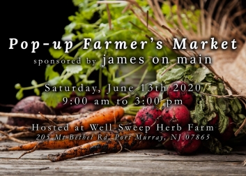 Hosted at Well-Sweep Herb Farm, James on Main will be vending/grilling beef sliders & dogs from 11a.m.- 2p.m. Pre-order specialty cuts from Buckhead Meat to be picked up day of the pop-up. This Pop-up Farmer’s Market is operating with every precaution in mind to ensure we do business responsibly.