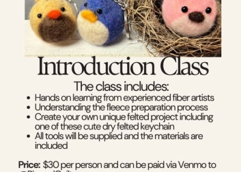 Hope Junction Antiques is celebrating National Handmade Day and National Birding Day with instructors Rich Danner and Patrcia Cristo, teaching wool processing and dry felting in a hands-on introductory class. Create your own project and all supplies are included.