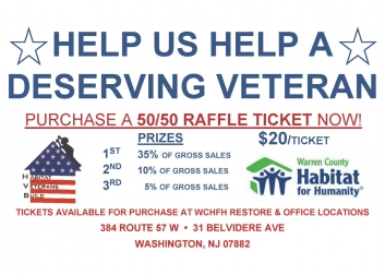 Proceeds from this raffle will go toward a house being built for a Veteran family in Pohatcong Township. The drawing will be held at Habitat's Washington office on Veteran's Day, November 11. Purchase tickets online, or visit the WCHFH Restore or office (both in Washington).