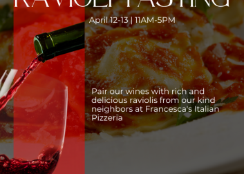 Every Italian makes their own special ravioli, little pillows of pasta dough traditionally stuffed with delectable cheeses and drizzled with marinara or seasoned butter. Francesca’s Italian Pizzeria will have theirs for sampling. After your wine tasting, grab a bottle of your favorite wine to enjoy with a small plate of ravioli.