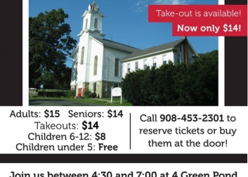 All-you-can-eat Family Style Roast Beef Dinner with assorted desserts. Call ahead and leave message to reserve tickets, or buy them at the door. Take-outs and Adults: $15; Seniors: $14; Kids age 6-12: $8; Kids age 5 and younger: Free. 908-453-2301.