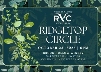 Celebrate Ridge and Valley Conservancy's land preservation stewardship accomplishments with a special event at Brook Hollow Winery. Experieince gourmet plant-based dining by Green Cart Catering and a selection of beer and wine. The evening will feature live music from eclectic artist Lee Larson, and there will be a 50/50 raffle and other prizes.