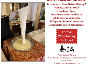 Join Scott for a fun-filled afternoon of mozzarella-making and wine tasting! You'll learn the art of crafting fresh mozzarella balls to take home, all while enjoying a wine tasting featuring Four Sisters' finest selections.