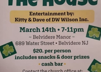 $20/person includes entertainment by Kitty and Dave of DW Wilson Inc., snacks and prizes. Cash bar. Benefitting United Presbyterian Church of Belvidere and beiing held at Belvidere Manor. Contact church office for tickets: 908-475-2771.