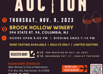 Doors open at 6 PM and bidding ends at 7:15 PM. Wine tasting will be available. Seating is limited.