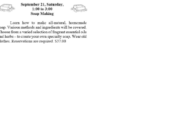 Learn how to make all-natural, homemade soap. Various methods and ingredients will be covered. Choose from a varied selection of fragrant essential oils and herbs – to create your own specialty soap. Wear old clothes. Reservations are required. Cost is $37.