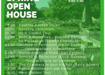 At 9:00 join Louise Hyde for a presentation on Favorite Kitchen Herbs. One of the farm’s founders, gardener, cook and author of the hit cookbook ‘Favorite Recipes From Well-Sweep’ – come learn Louise’s knowledge on easy to grow herbs for savory dishes.