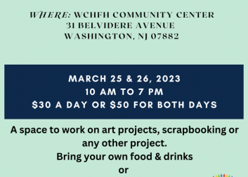 Come for a day or the weekend to work on scrapbooks, art projects and any other artwork that needs space. $30 for the day or $50 for both days. You're welcome to bring snacks, drinks or order from a local restaurant.