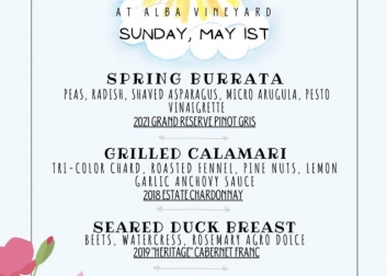 Chef Anthony will host an exceptional 4-course, seasonal dinner paired with Alba's estate wines with relaxing music by pianist Patrick Kerssen.