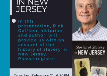 Did you know New Jersey was the last northern state to abolish slavery, in 1866? In this presentation, Rick Geffken, historian and author of "Stories of Slavery in New Jersey," will provide us with an account of the history of slavery in New Jersey throughout the 17th-19th centuries.