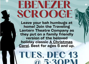 Enjoy a live performance by the Traveling Lantern Company of 'A Christmas Carol" depicting Ebenezer Scrooge, a nasty, mean, snarling old geezer with no care for anything other than his money. His one and only friend visits him as a ghost, and starts him on a journey that melts his icy heart and teaches him the joys of caring for, and giving to others.