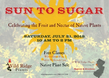 From the light of the sun and carbon in the air, plants create life. Celebrate the sweetness that native plants create – for wildlife, for people. This event is free. Check out the plants in bloom in their gardens, shrublands, and meadows. Also, there will be two classes: Wild Edibles class at 10am and Native Medicinals at 1pm. To register and for directions – nursery@wildridgeplants.com.