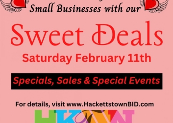 Join the Hackettstown Business Improvement District as it celebrates Valentines Day Weekend with the barbershop Quartet Kudos as they roam from 12 - 2pm singing "Let Me Call you Sweetheart" as well as other choice songs. Take a picture with the giant Love sign at the Main Street Gazebo! Sample the tastes of the great Hackettstown Eateries and Breweries. Check out sales and special offers at the local shops and businesses.
