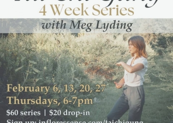 Meg Lyding, trained through Circle of Chi by Master Lama Rasaji who lived and trained at the Darchen Lamasery in Tibet, shares a series of gentle, flowing, meditative movements done standing with balanced breathing. Meg who operates at a higher frequency, and is soft, focused and articulate. Tai Chi Gung helps us consciously connect to the energy of life within and around us, supporting health and wellness on all levels of being.
