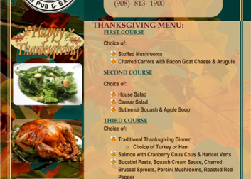 Don't want to cook on Thanksgiving? Come to Bea McNallys for a delicious meal. $34.95 per person and $13.95 for individuals 12 and under. Get your reservations by calling 908-813-1900.