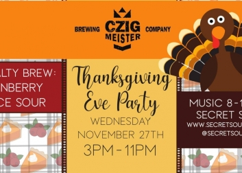 Join freinds for craft beer, featuring Cranberry Sauce Sour specialty brew, and live music from Secret Sound Band (8-11pm).