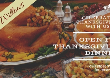 Open at noon for Thanksgiving Day for dinner and last reservation is at 5pm. Call 908-574-5101 for reservations.