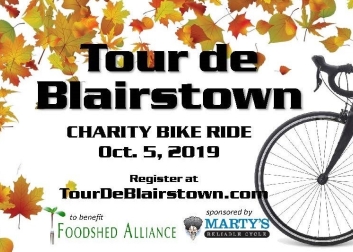 Organized by Marty's Reliable Cycle to benefit the Foodshed Alliance, the Tour de Blairstown is sponsored by the Blairstown Rotary Club, the Greater Blairstown Business Association, Buck Hill Brewery, BMW of Newton. It is supported by the Blairstown Enhancement Committee, YMCA Camp Mason, Community Supported Garden at Genesis Farm, Township of Stillwater and Triple Brook Camping Resort.
