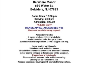 Tricky Tray sponsored by Friends of the Washington Public Library. $20 admission, adults only. Doors open 12pm, drawing at 2:30pm. For more information and tickets, contact Donna Dean: 908-328-5640.