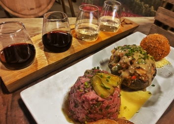 Grand Reserve Riesling - Lobster Stuffed Portobello Grand Reserve Chardonnay - Black Truffle & Wild Mushroom Arancini ”Heritage” Cabernet Franc - Filet Tartare Vintage Port - Gourmet Chocolate Truffles