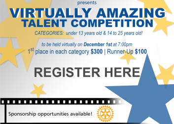 This is the second Virtually Amazing Talent Competition Hackettstown Rotary has hosted in recent months. The last opportunity was scheduled in July and focused on featuring adult talent. Both events are replacing Rotary’s most financially impactful fundraiser of the year, Memorial Madness Car Show, which was cancelled due to the current pandemic.
