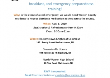 The Warren County Health Department, in partnership with the Warren County Department of Public Safety, is hosting a volunteer assembly drill to test a component of the Public Health Emergency Response Plan. County agencies will be participating in an exercise to determine the capability of our public health workforce and residents to staff three point of distribution (POD) sites. At the POD site, volunteers will receive Just in Time Training (JITT), which will teach volunteers all they need to know about working at a POD site in a real life emergency. There will be coffee, tea and a light continental breakfast. Join us at the following locations: