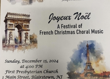 Swing into the holiday season with the Water Gap Singers, who wish you a Joyeux Noel by performinga variety of musical greetings of the season. Under the direction of Music Director Joseph Mello, the chorus will present a wonderful afternoon of French Christmas music, along with a few secular surprises. A special treat will be the rarely-performed Christmas Oratoria by Camille Saint-Saens.
