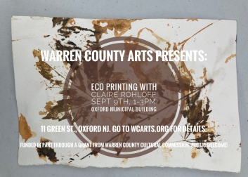 Warren County ARTS presents a workshop on Eco Printing led by Claire Rohloff at The Oxford Municipal Gallery, 11 Green Street, Oxford.