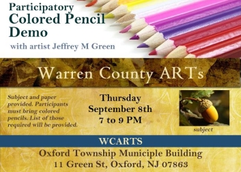 Warren County ARTS announces its meeting program will be a color pencil workshop with Jeff Green. See website for list of materials to bring.
