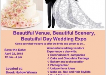 Did you get engaged or planning on getting engaged? Come to the Brook Hollow Winery to see what vendors have for the bride and groom. Experience a day with entertainment companies, cake and chocolate tastings; bakery and chocolatier; photographer, unique favor ideas, make-up and hair stylists; food caterers, custom decor and accessory designers; floral designers, travel agent, free samples and giveaways. Brought to you by It's the Talk of the Town, LLC. First 50 brides to register by sending an email through the Contact Us section of It's the Talk of the Town, LLC will receive a gift bag!