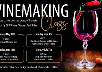You will receive your own winemaking kit, choice juice to make 30 bottles of wine, 30 complimentary unlabeled bottles and 30 Brook Hollow corks ($40 value), with four in-house classes to attend over the course of 8 weeks.