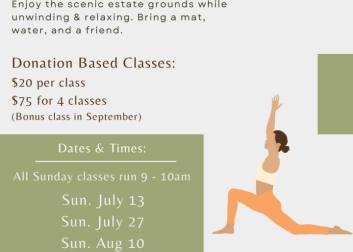 Suggested donation: $20 per class, or $75 for 4 classes + a bonus class in September. Donations support cultural + educational programs at Rutherfurd Hall
