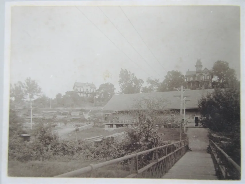 (PHOTO: The Footbridge circa 1900 shows the Footbridge in the foreground with the NYS&W Blairstown Station and Howell Lumberyard to the left. Photo courtesy of Blairstown Historic Presevation Committee.)