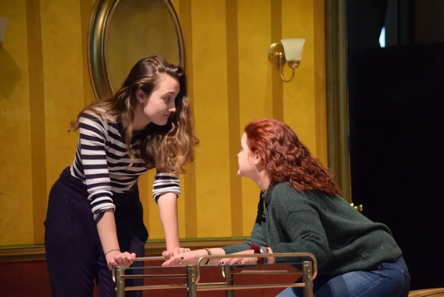 PHOTO: Rehearsal photo of Bachelorette featuring Amanda Ackerman (Gena) and Emily Kurnides (Katie)