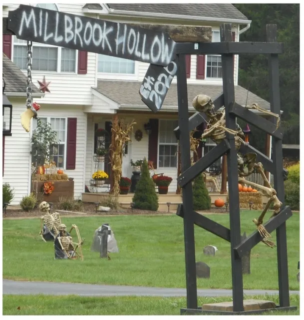 If you happen to be driving around Millbrook Rd. in Blairstown, you may come across Millbrook Hollow, a two family yard display complete with grave stones, lights and creepy skeletons!