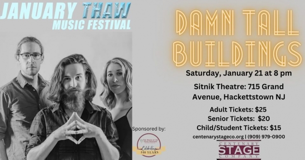 Then, join Centenary Stage Company as Damn Tall Buildings take to the stage on January 21 at 8:00 p.m. Bluegrass at heart but pulling from a wide range of influences from swing to ragtime, jazz to contemporary, Damn Tall Building’s lyrics tell the story of the mundane while keeping to their message of “Carry on”.