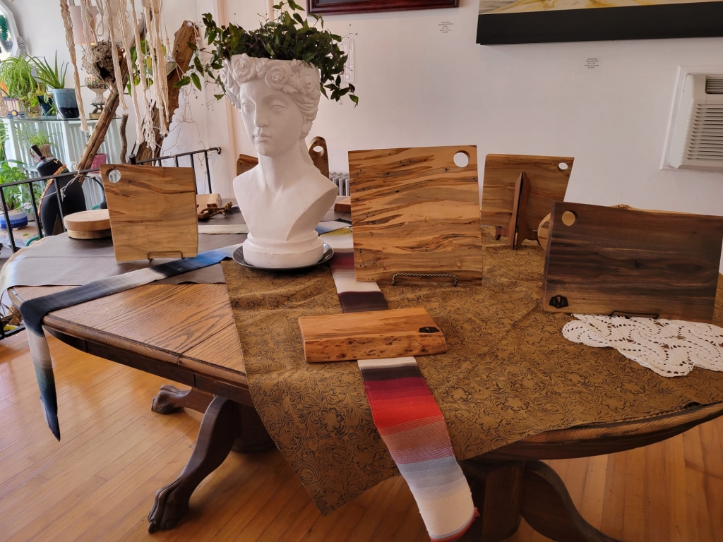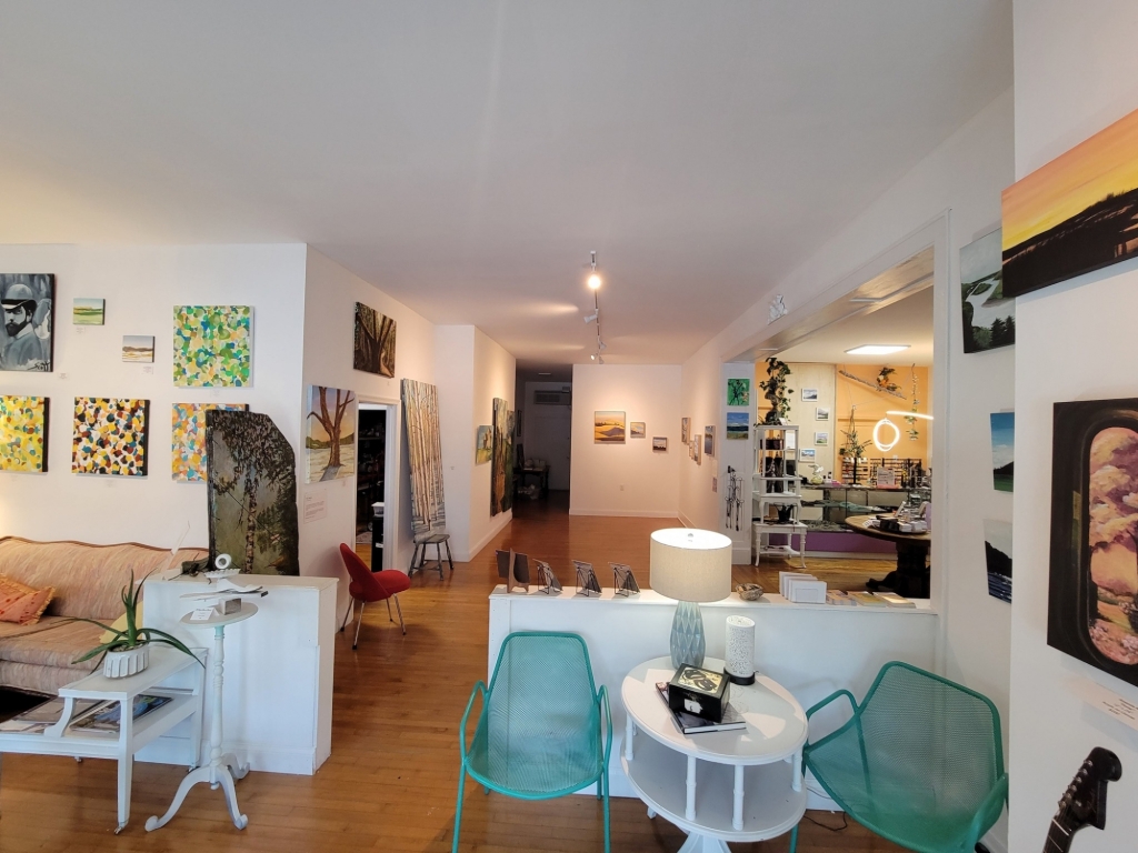 A fine art gallery with lots more to offer, including an apothecary, gift shoppe, lots of plants, community classes, yoga, jewelry, typing services, books, cards, vegan chocolate, sculpture, and music events including an open mic night!