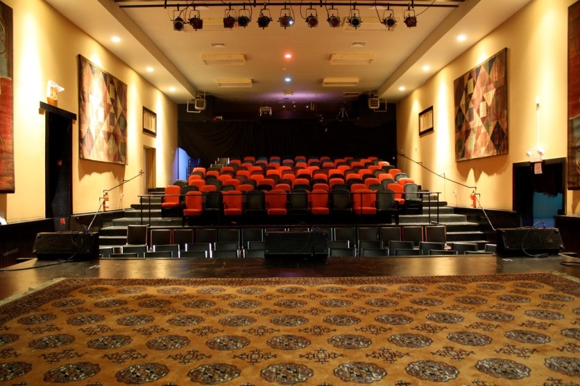 The comfortable and intimate theater space at Roy's Hall makes it ideal for a wide variety of uses. The theatre features mezzanine seating for 135 and a large orchestra section that can function as a dance floor, banquet space or provide room for up to 75 additional portable seats. A state-of-the-art concert sound system will satisfy the most discriminating performer and 64 -tracks of digital recording are available for capturing that fantastic live mix. On stage is a vintage 1955 Yamaha F.C. 9′ concert grand piano, maintained by master piano technician Paul Adams, RPT. Also available are a 5000 AnsiLumen DLP projector, a 13.5′ x 18′ cinema screen and 6′ x 8′ screen for smaller presentations.