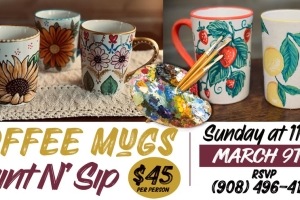 Whether it's your morning coffee, an afternoon tea break or hot cocoa by the fire, let Kerri from Art•stitution guide you through the paint process. All painting supplies provided with 2 coffee mugs to paint.