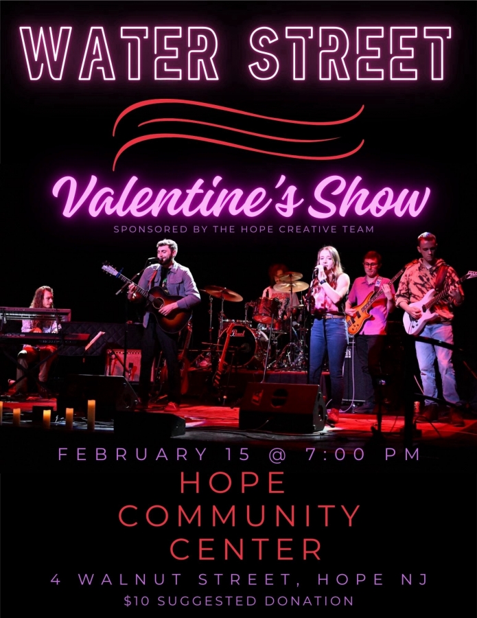 The Hope Community Center welcomes North Jersey's own Water Street, a staple in the community when it comes to playing local events, volunteering and honoring the roots of their origin. The Valentine's show will feature new music off their anticipated new album debuting spring 2025.