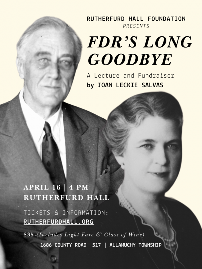 Historian of Rutherfurd Hall, Joan Leckie Salvas, explores one of the most poignant chapters in American history with the final days of President Franklin D. Roosevelt and his enduring connection to Lucy Mercer Rutherfurd. Through meticulous research and vivid storytelling, Salvas will bring to life the emotional and historical weight of those last moments.