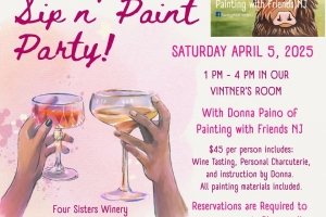 Four Sisters hosts a Sip N' Paint instructed by Donna Paino of Painting with Friends NJ. Enjoy a wine tasting and personal charcuterie, while painting a Shetland Cow with a Floral Wreath headband.