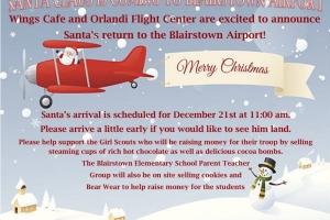 It's a bird! It's a plane! It's Santa flying into the Blairstown Airport! The Girl Scouts will be selling hot cocoa and cocoa bombs, along with BES Parents group selling cookies. Bear Wear will also be on site.
