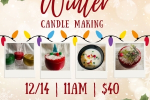 Each guest will receive all supplies needed, including cotton wicks and clean fragrances, to make an 8 oz candle with 100% soy wax. Choose your favorite color tin and you will also be able to decorate your lids with holiday miniatures & more!
