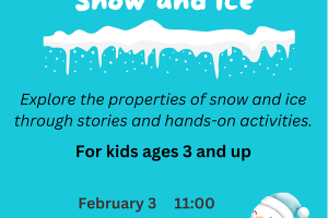 Explore snow and ice in this STEM program for kids ages 3-8 with an adult. The event will begin with a story and then move on to a variety of hands-on activity stations to explore the properties of snow and ice.